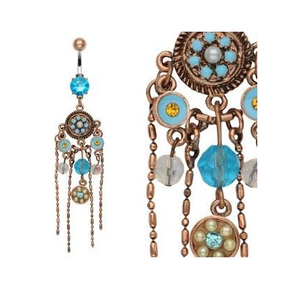 Piercing do pupíku měděného vzhledu, modré kamínky
