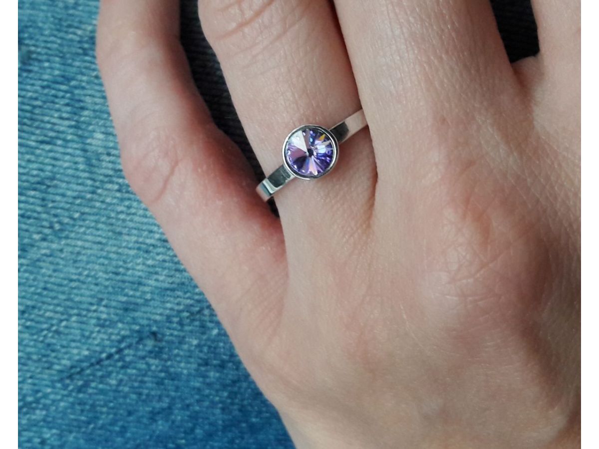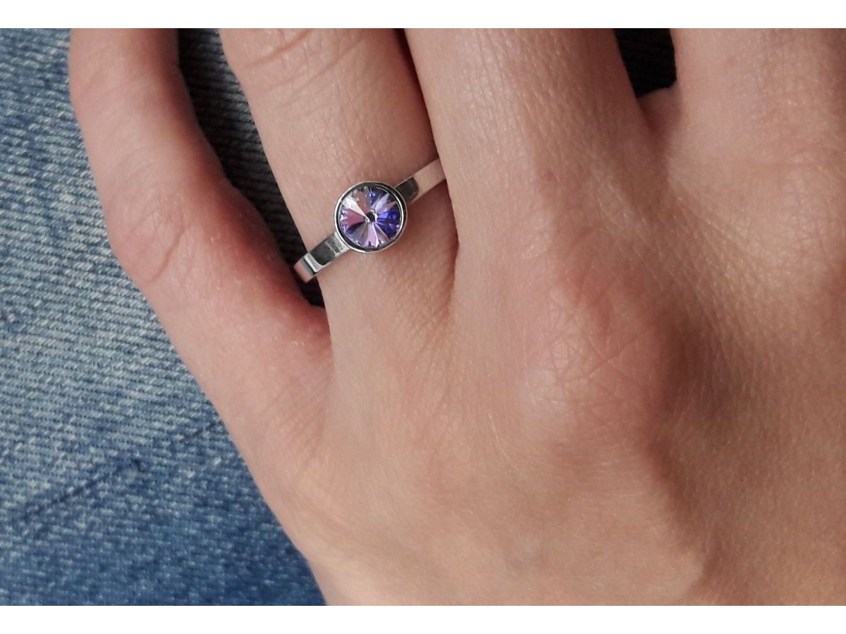 Jemný stříbrný prsten zdobený duhově fialovým kamenem Crystals from Swarovski®