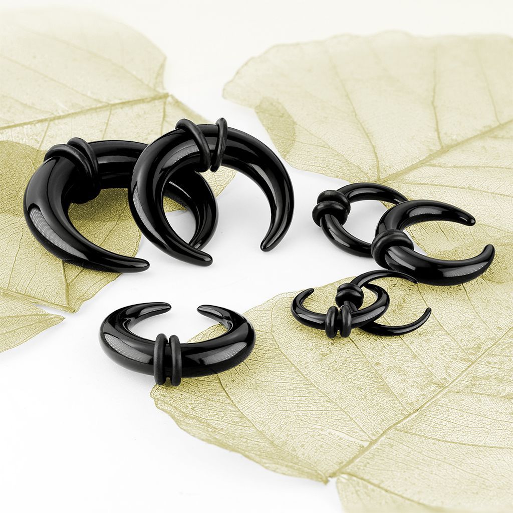 Černý akrylátový roztahovák do ucha ve tvaru podkovy.