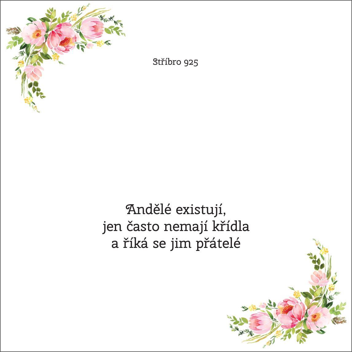 Dárkový set obsahuje stříbrný náhrdelník anděl držící srdíčko ze zirkonu. Je zavěšený na dárkové kartě s nádherným přáním „Andělé existují, jen často nemají křídla a říká se jim přátelé“. Krásný něžný dárek pro kamarádku, která je vaším strážným andělem.
