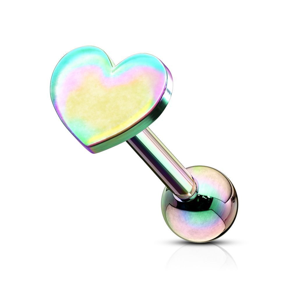 Piercing činka do ucha (tragus, cartilage piercing) z chirurgické oceli zdobený srdíčkem.