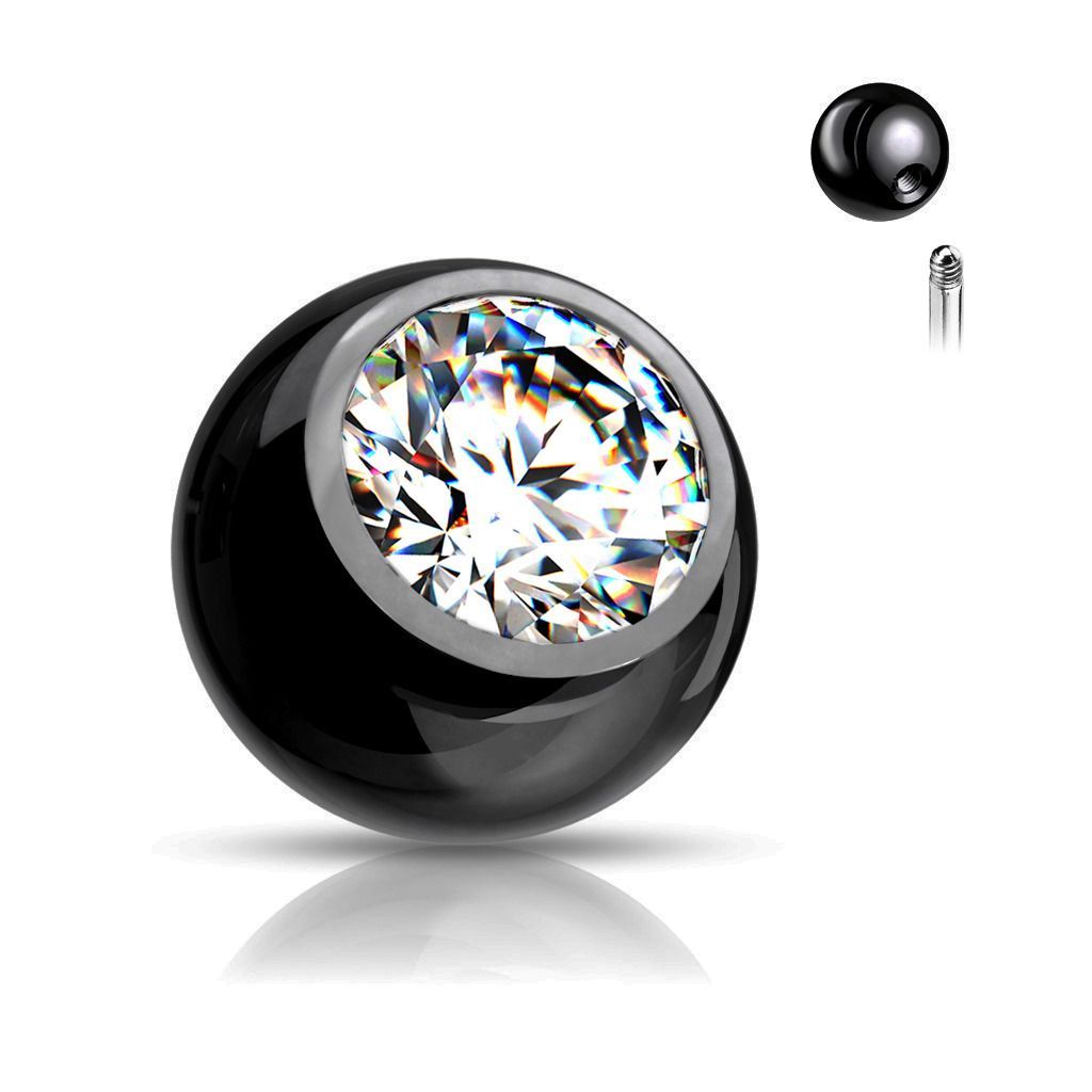 Piercing - náhradní kulička s černou povrchovou úpravou. Kulička s čirým zirkonem.