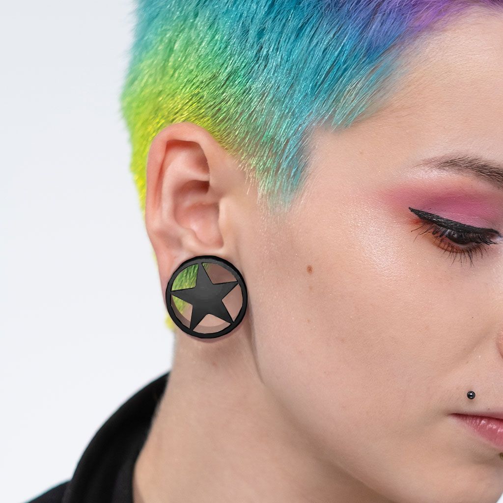 Šperky (18296) > Piercing (3900) > Tunely a plugy (309) > chirurgická ocel 316L (131) > Černý šroubovací ocelový tunel hvězda (12 mm)