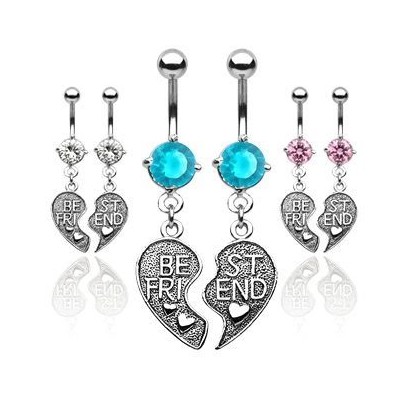 Sada dvou piercingů - banánky do pupíku s ozdobou půlky srdce, které dohromady tvoří jedno celé srdce. Pro dvě kamarádky.