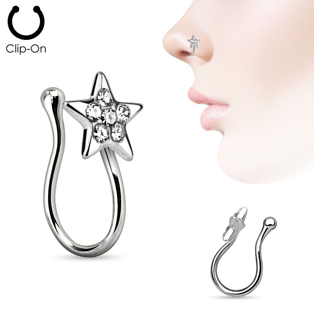 Falešný piercing do nosu s hvězdičkou. Hvězda je osázena čirými zirkony.