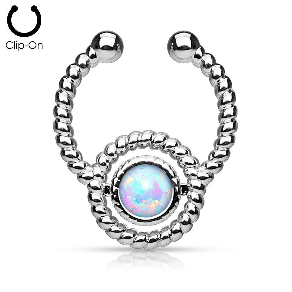 Falešný septum piercing, falešný piercing do septa, nasazovací piercing.