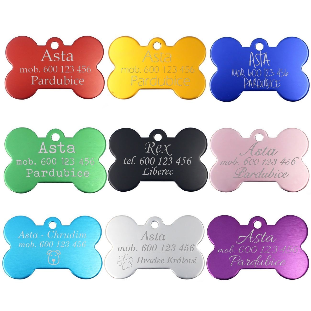 Dodejte obojku vašeho mazlíčka stylový a praktický doplněk s naší lehkou a odolnou hliníkovou zvířecí známkou ve tvaru kosti. Tato známka je dostupná v různých barvách, což vám umožní vybrat tu, která nejlépe ladí s osobností vašeho čtyřnohého přítele.