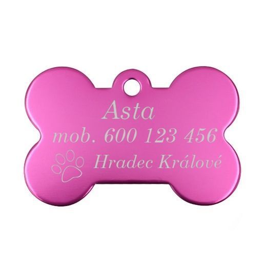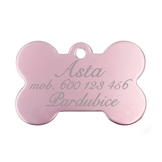 Hliníková psí známka kost (tmavě růžová)