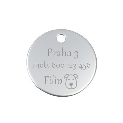 Hliníková psí známka kulatá 30 mm (stříbrná)
