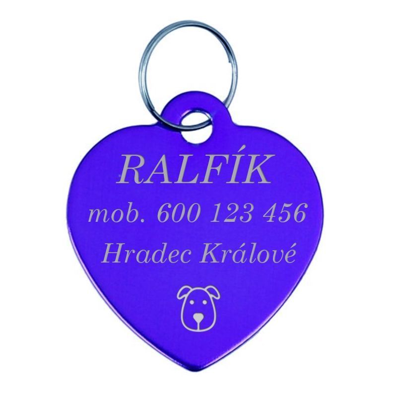 Hliníková psí známka srdce (tmavě modrá)