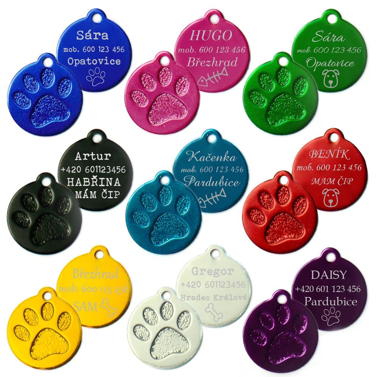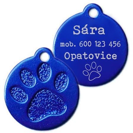 Hliníková psí známka tlapka velká (tmavě modrá)