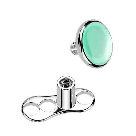 Kompletní podkožní implantát - microdermal piercing. Piercing se závitem o rozměru 1,6 mm.