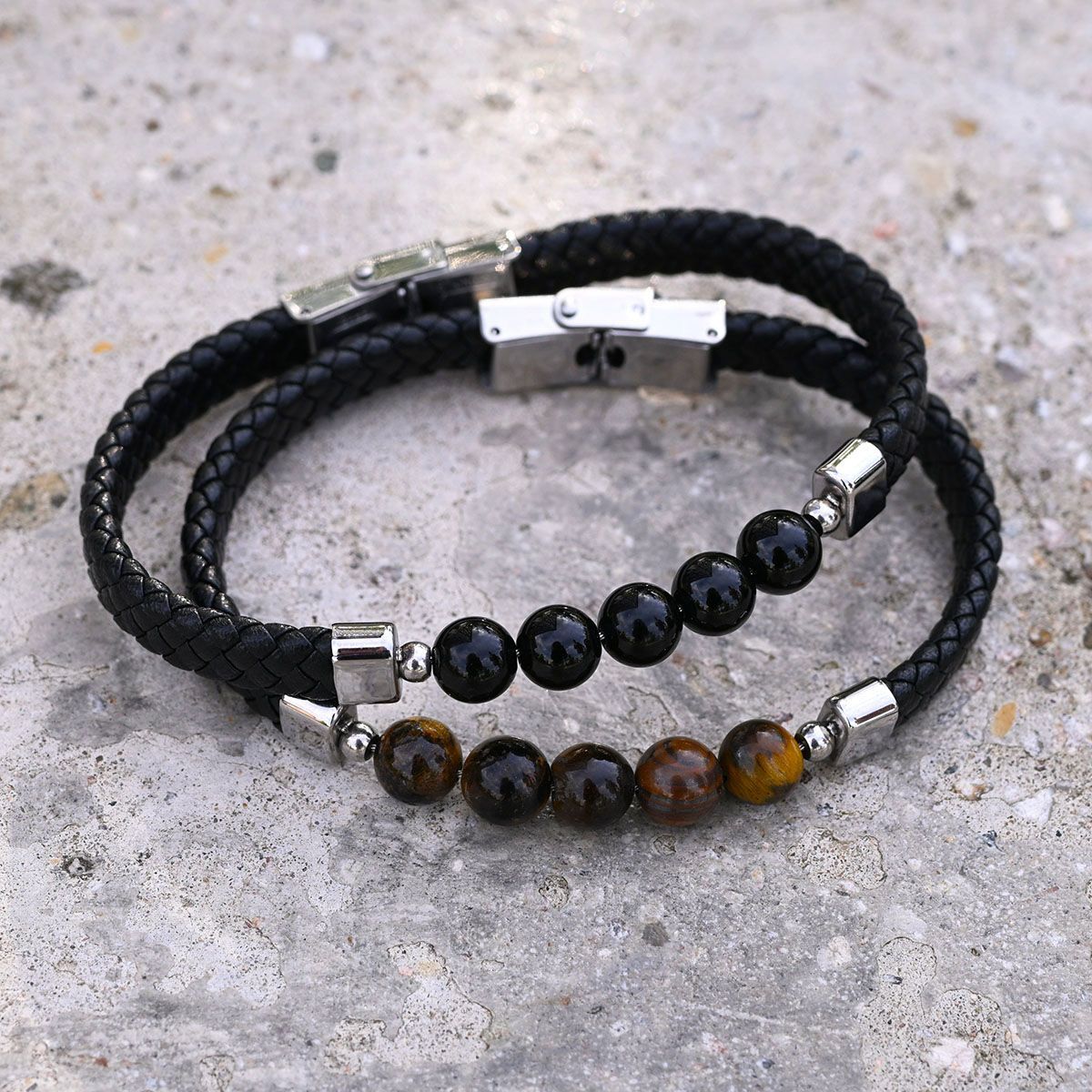 Kožený pánský náramek 43086.3 tygří oko 22 cm