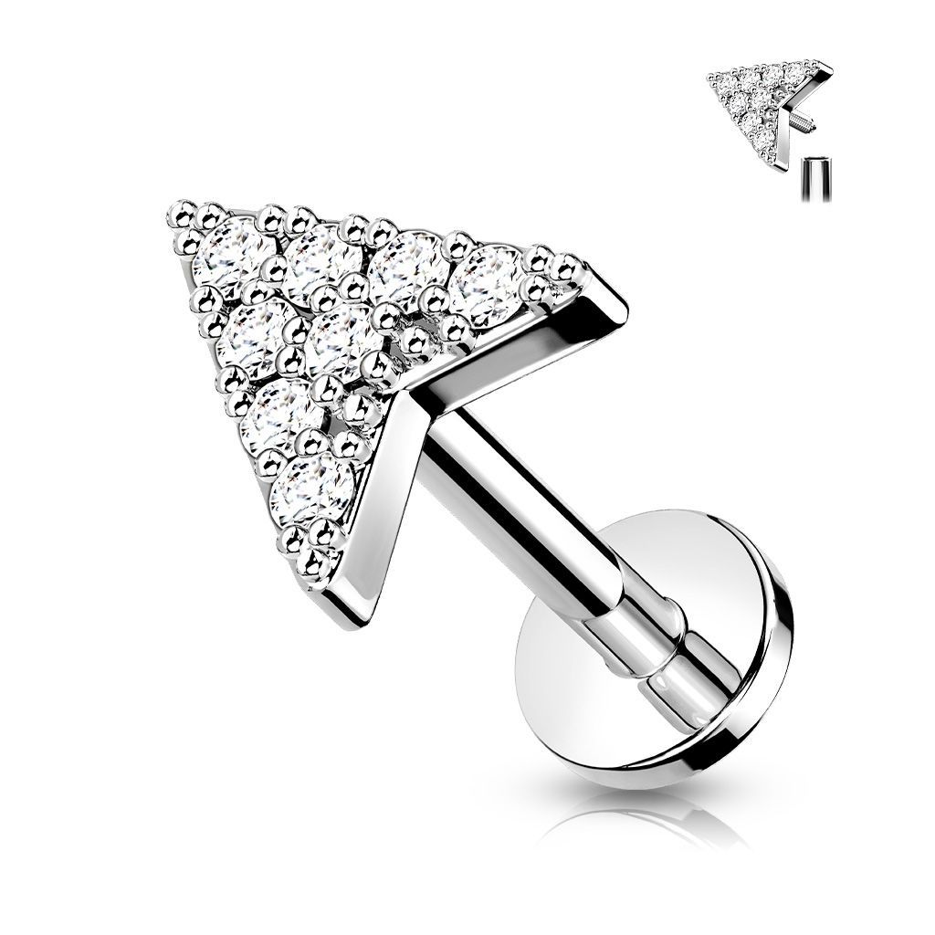 Piercing do brady s ozdobou ve tvaru šipky se zirkony.