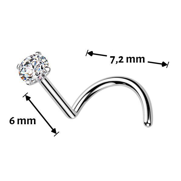 Titanový zahnutý piercing do nosu - mosovka s moissanitem. Používáme pouze kameny barvy D - nejvyšší stupeň barvy - nabízející ohromující, bezbarvý třpyt, který se velmi podobá diamantům nejvyšší kvality. Každý kámen má čistotu VVS, což znamená, že je prakticky bezchybný.