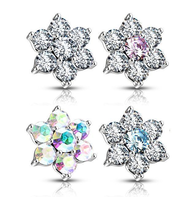 Microdermal - vrchní ozdobná část k microdermalu ve tvaru kytičky zdobené zirkony.