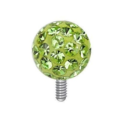 Vrchní šroubovací ozdobný díl k mikrodermálnímu šperku, vyroben z chirurgické oceli. Šperk je osazen krystaly, které jsou zalité vrstvou bezbarvé pryskyřice, což chrání před vypadáváním krystalů.