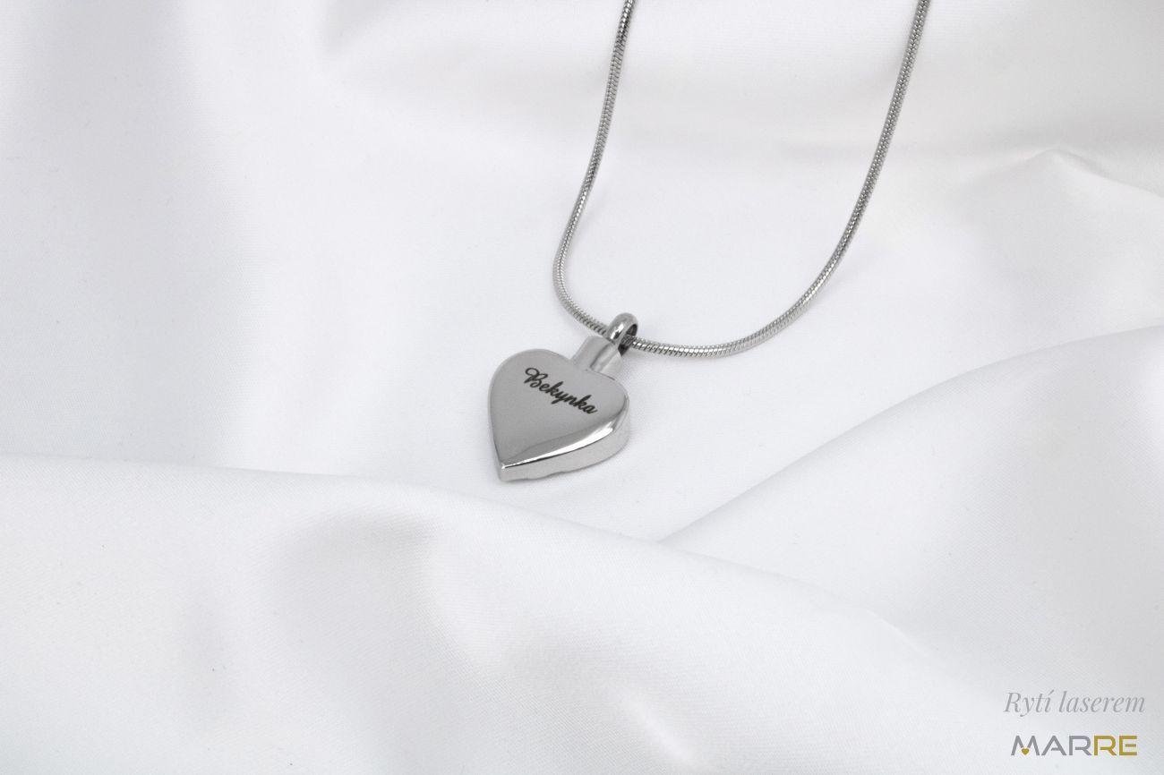 Náhrdelník - pamětní přívěsek, pietní přívěsek, přívěsek na popel srdce s tlapkou