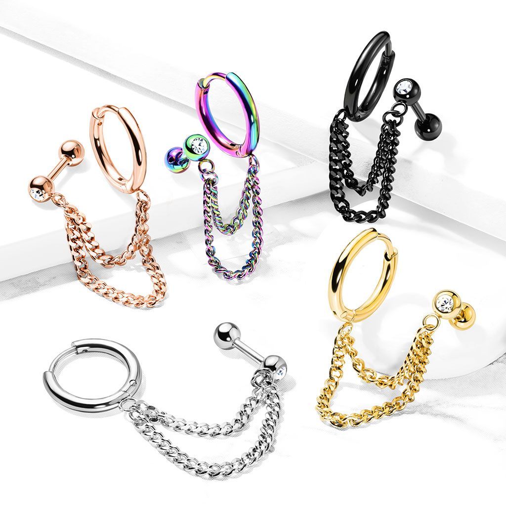 Náušnice a cartilage piercingu do ucha s řetízkem.