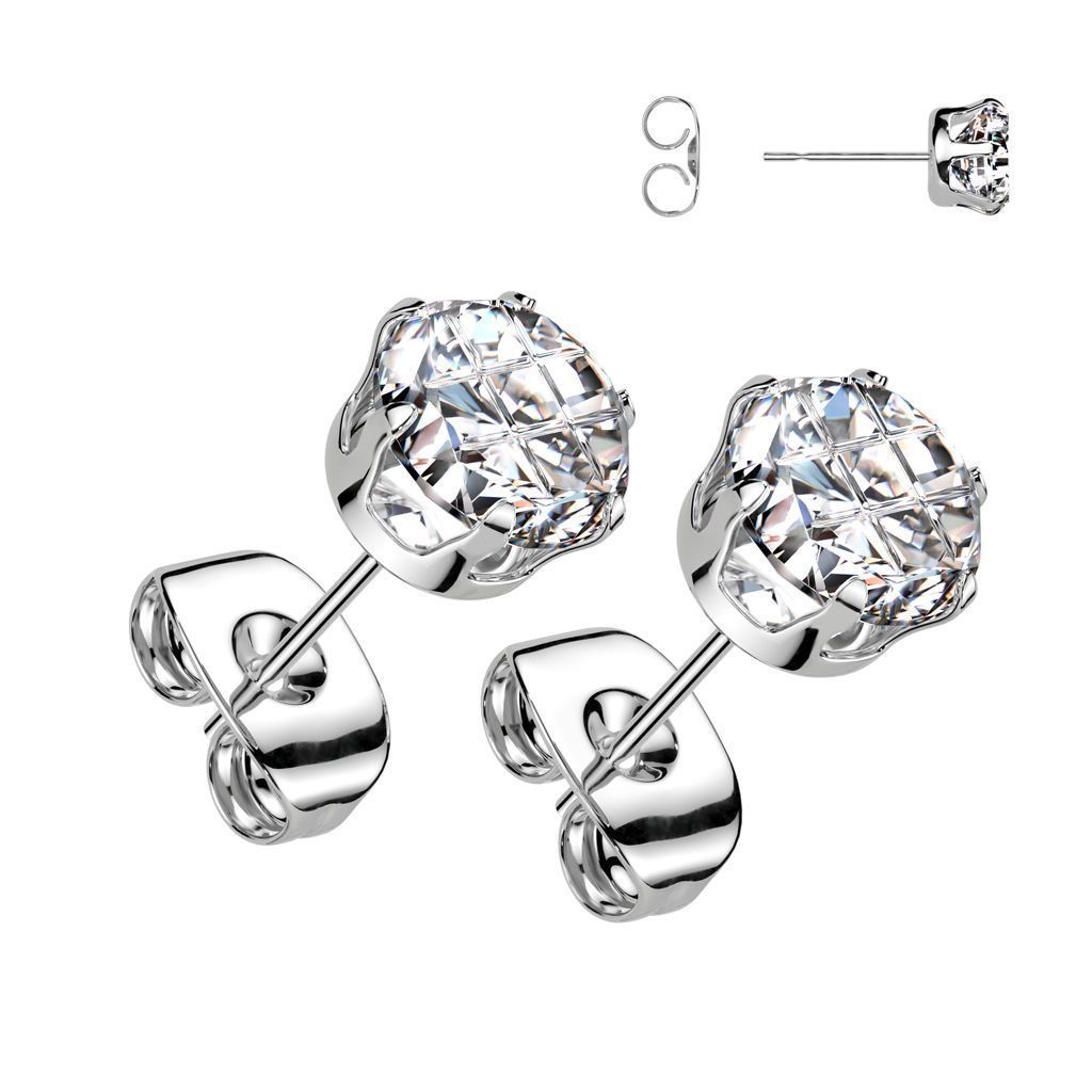 Naušnice chirurgická ocel lesklá s kulatým vyřezávaným zirkonem.
