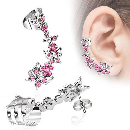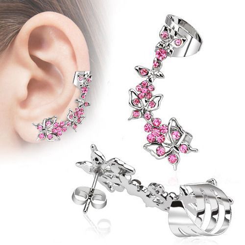 Šperky (17768) > Šperky z chirurgické oceli (4250) > Ocelové náušnice (1240) > Puzetové náušnice (564) > Náušnice s klipem - růžové zirkony (levé ucho)