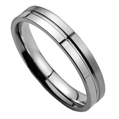 Ocelový snubní prsten zdobený podélným matným pruhem