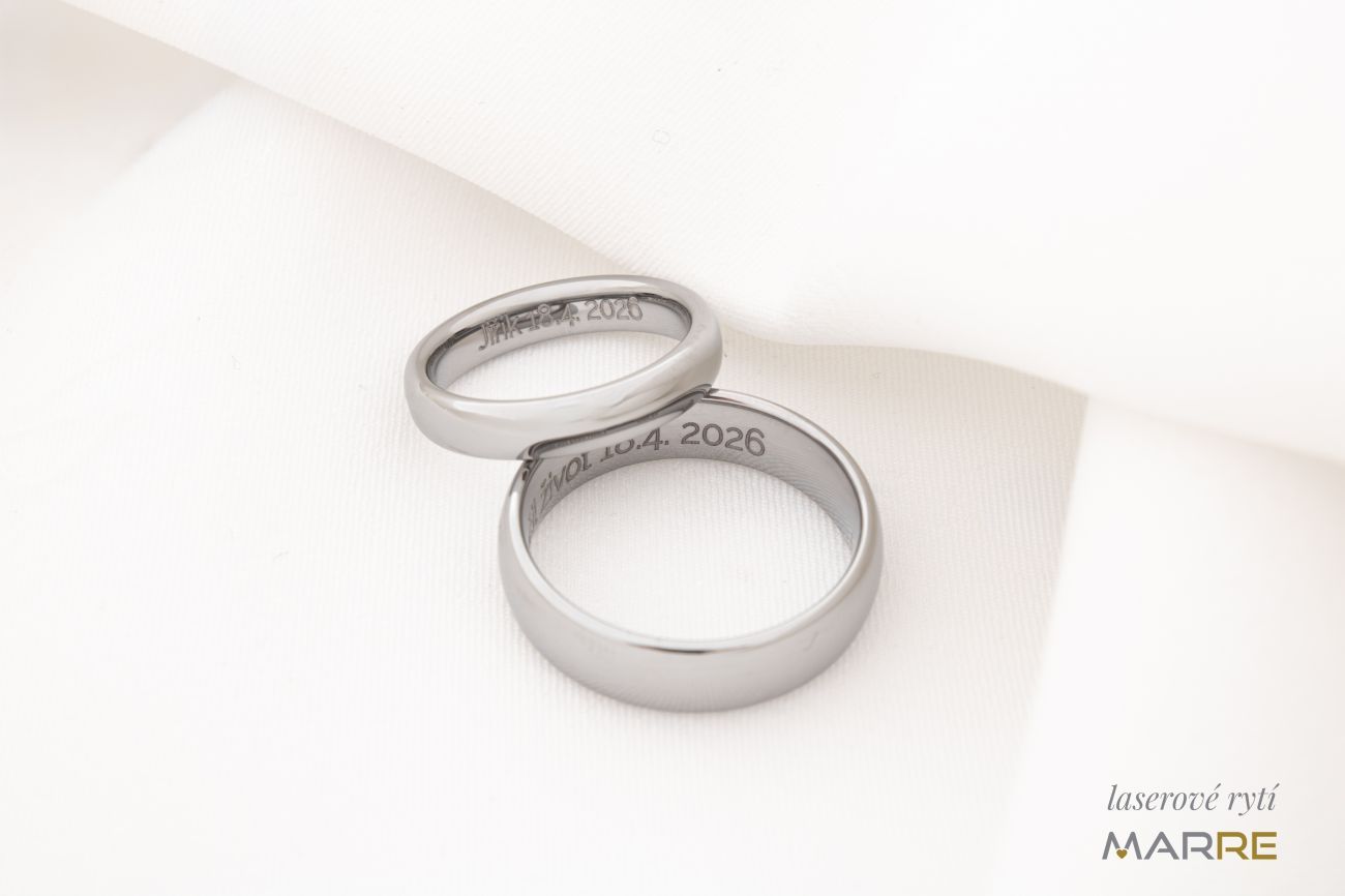 Rytinu do wolframových snubních prstenů lze provést pomocí speciálního typu laseru. Rytí provádíme přímo u nás na vlastních strojích, doba dodání se tedy pozdrží pouze o 1-2 dny (záleží na momentální vytíženosti).