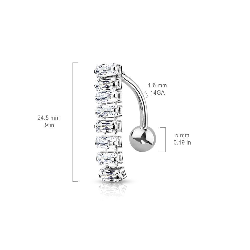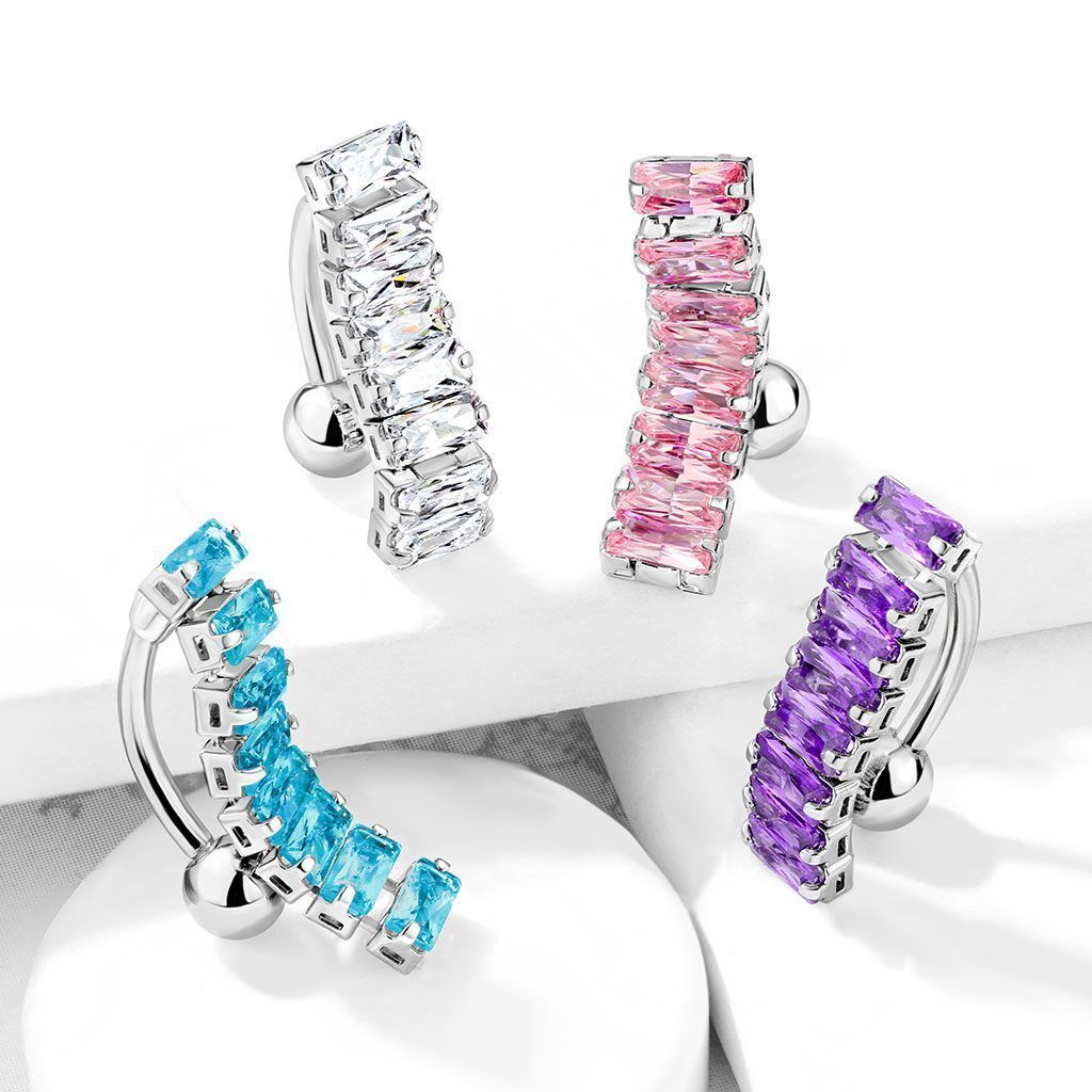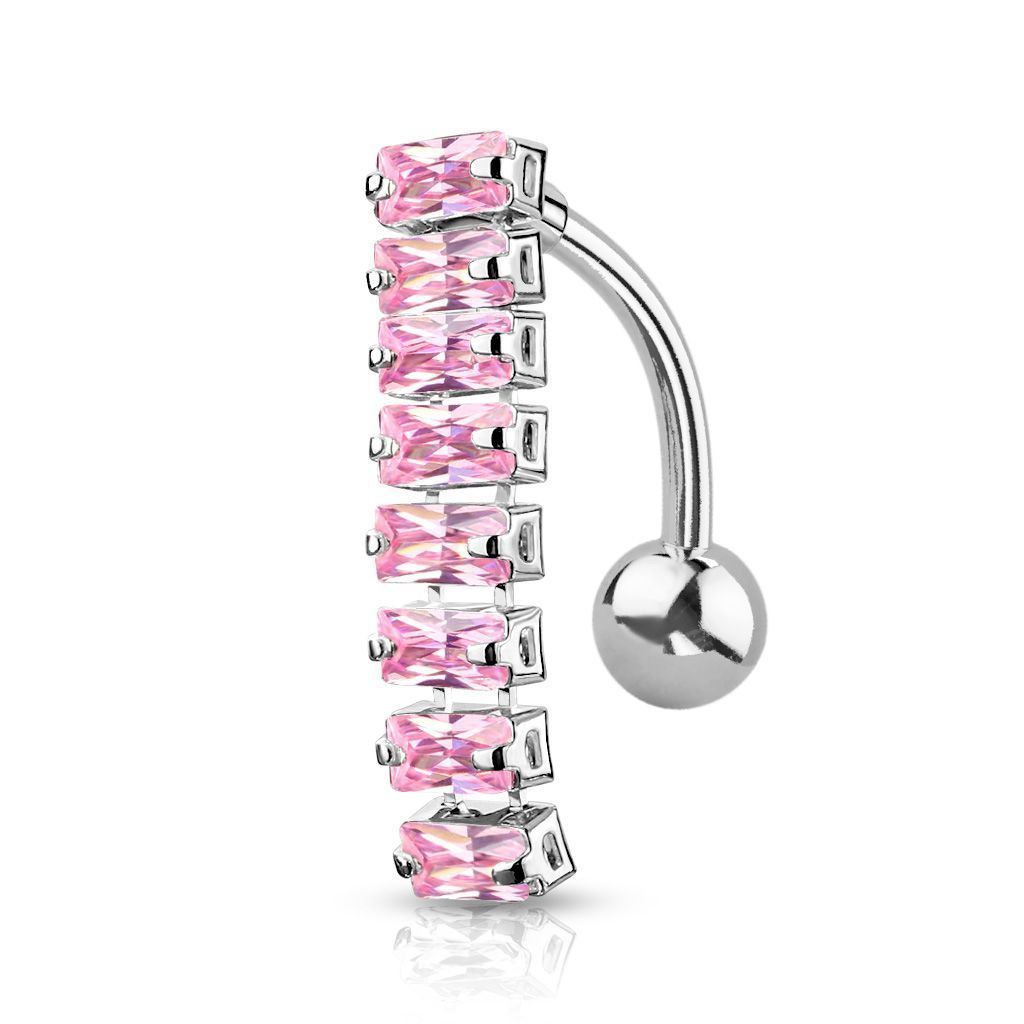 Obrácený piercing banánek do pupíku s ozdobou. Zdobený zirkony.