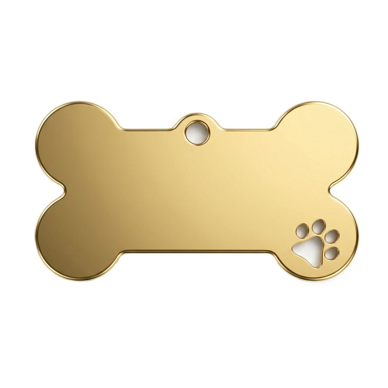 Ocelová psí známka ve tvaru kosti s tlapičkou zlatá