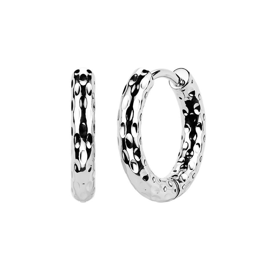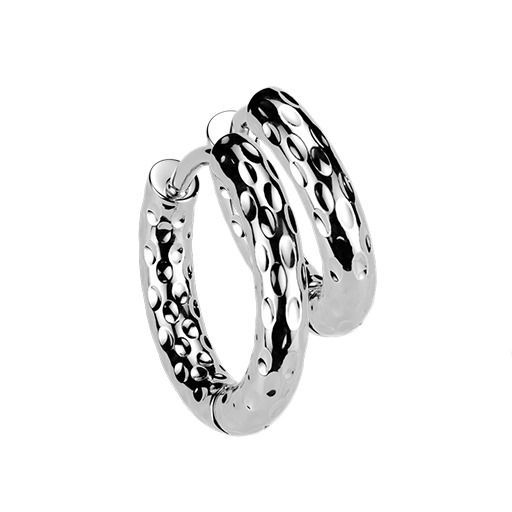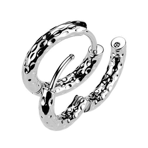 Ocelové náušnice kroužky s mačkaným dekorem.