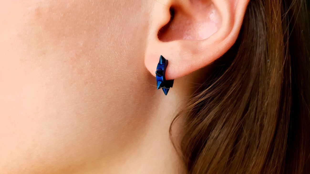Ocelové náušnice s hroty, barva modrá