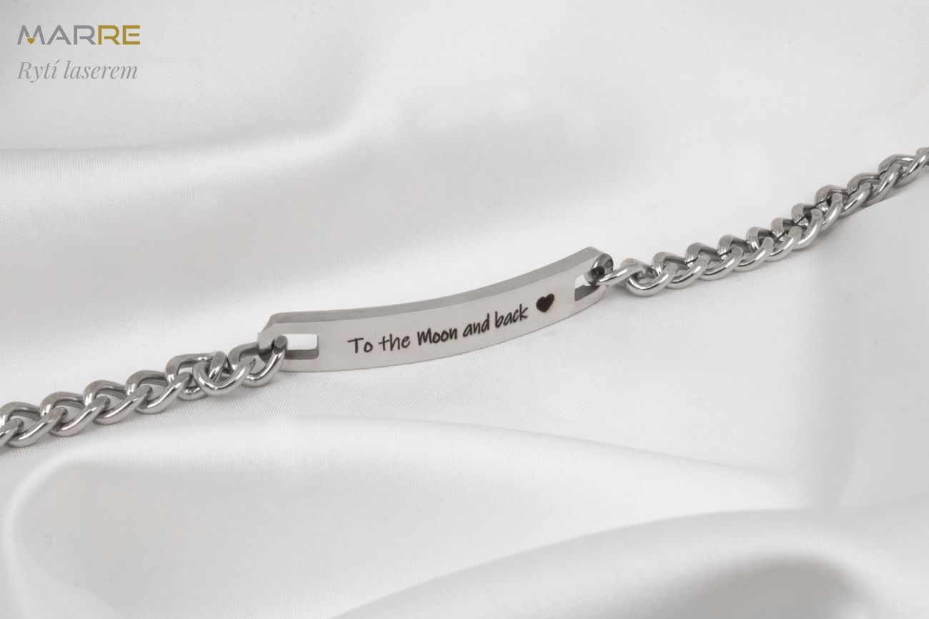 Na destičku lze vyrýt jméno, iniciály, datum nebo krátký text dle vašeho přání. Gravírování dodá náramku osobní význam a promění jej v jedinečný šperk s příběhem. Více o možnostech gravírování si můžete přečíst zde.