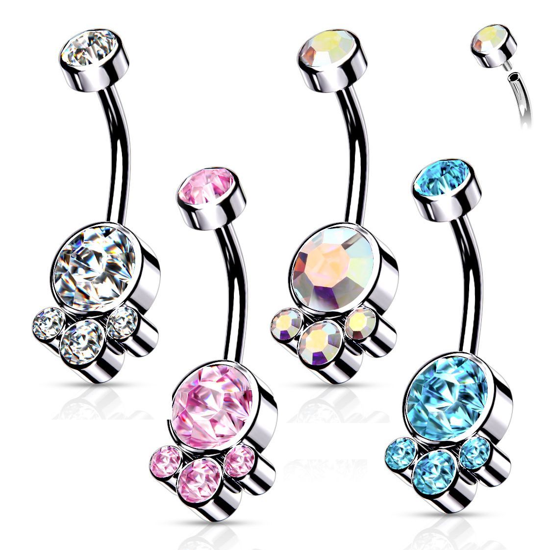 Piercing do pupíku se zirkony.