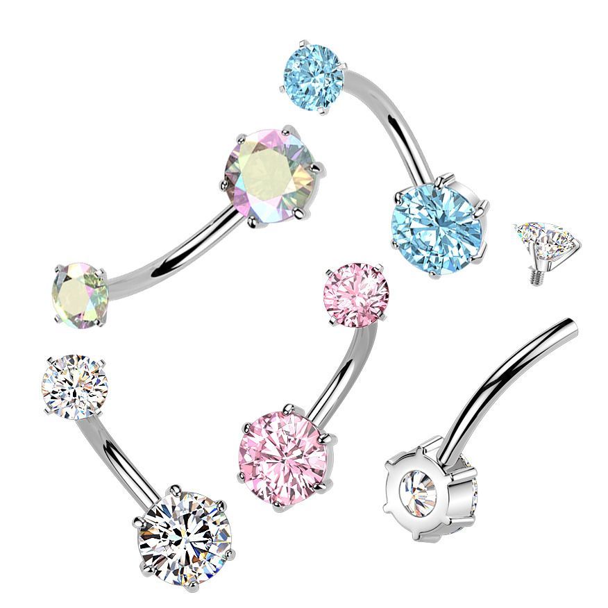 Piercingový šperk určený pro piercing pupíku. Se zirkony.