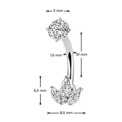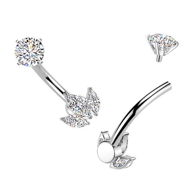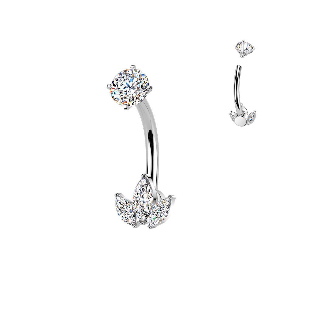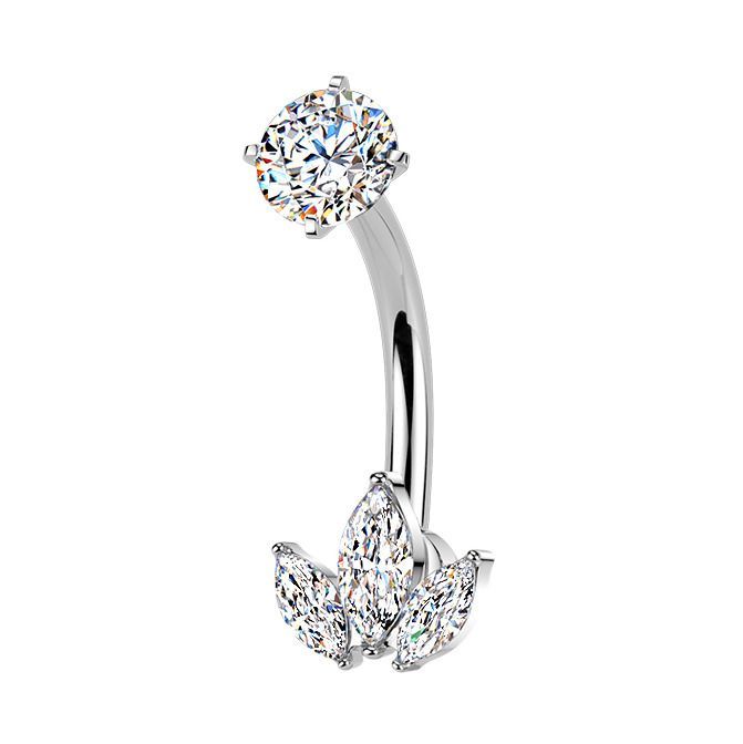 Ocelový piercing do pupíku se zirkony