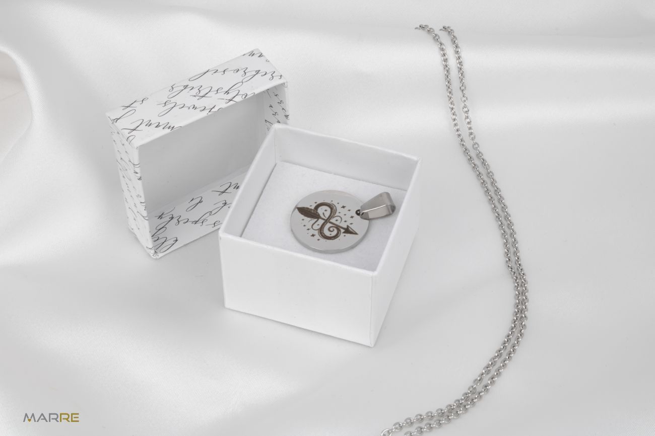 Přívěsek je vyroben z chirurgické oceli 316L a zaručuje vysokou odolnost vůči poškrábání, korozi a je hypoalergenní což znamená, že vám bude sloužit dlouhé roky. Tento materiál splňuje přísné standardy EU pro šperky určené k dlouhodobému nošení v kontaktu s pokožkou, zaručující bezpečnost a pohodlí při nošení. Jeho hladký povrch a jemný lesk působí velmi elegantně a dodávají šarm každému krku.