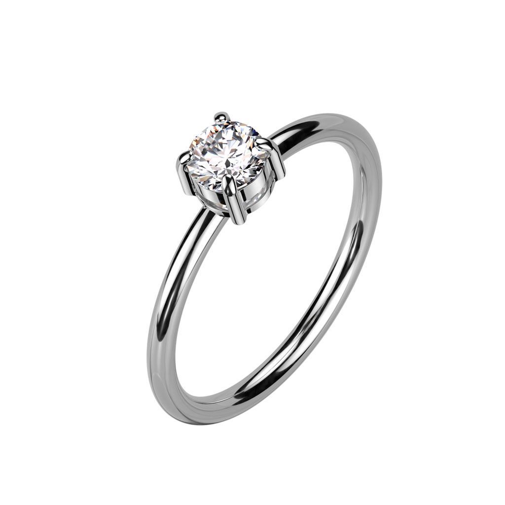 Drobný ocelový prstýnek s čirým zirkonem je možné použít také jako zásnubní prstýnek.