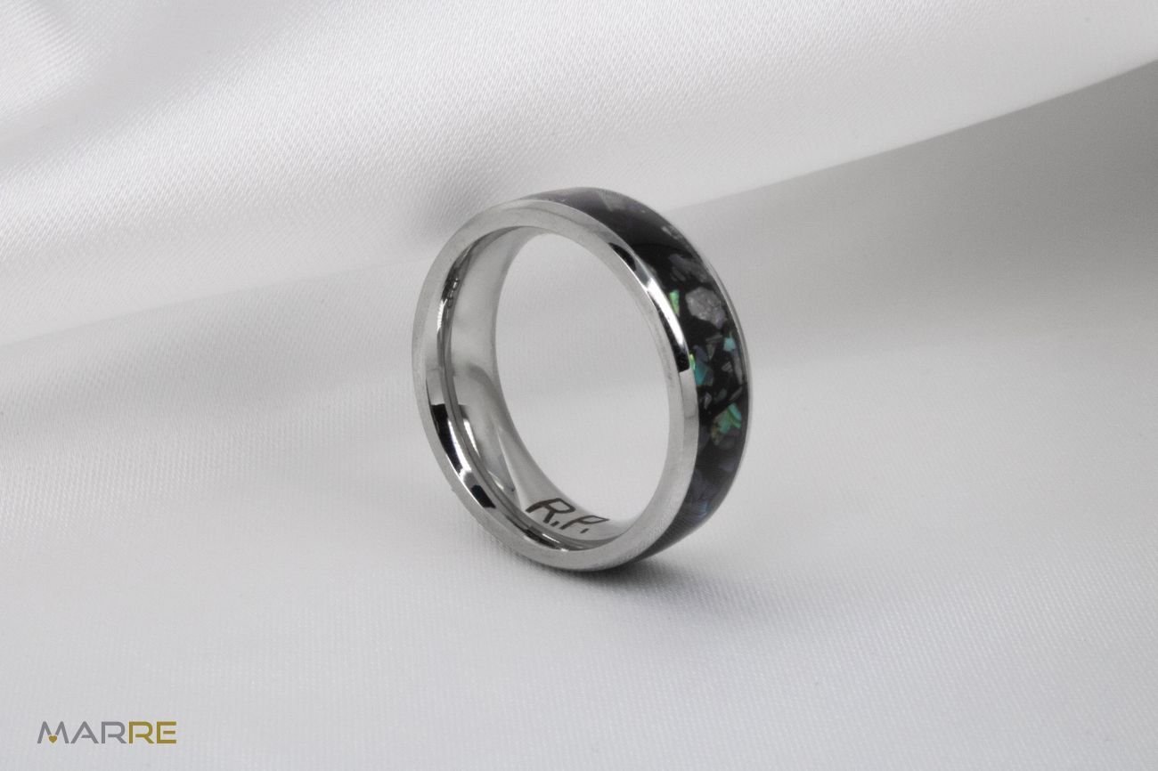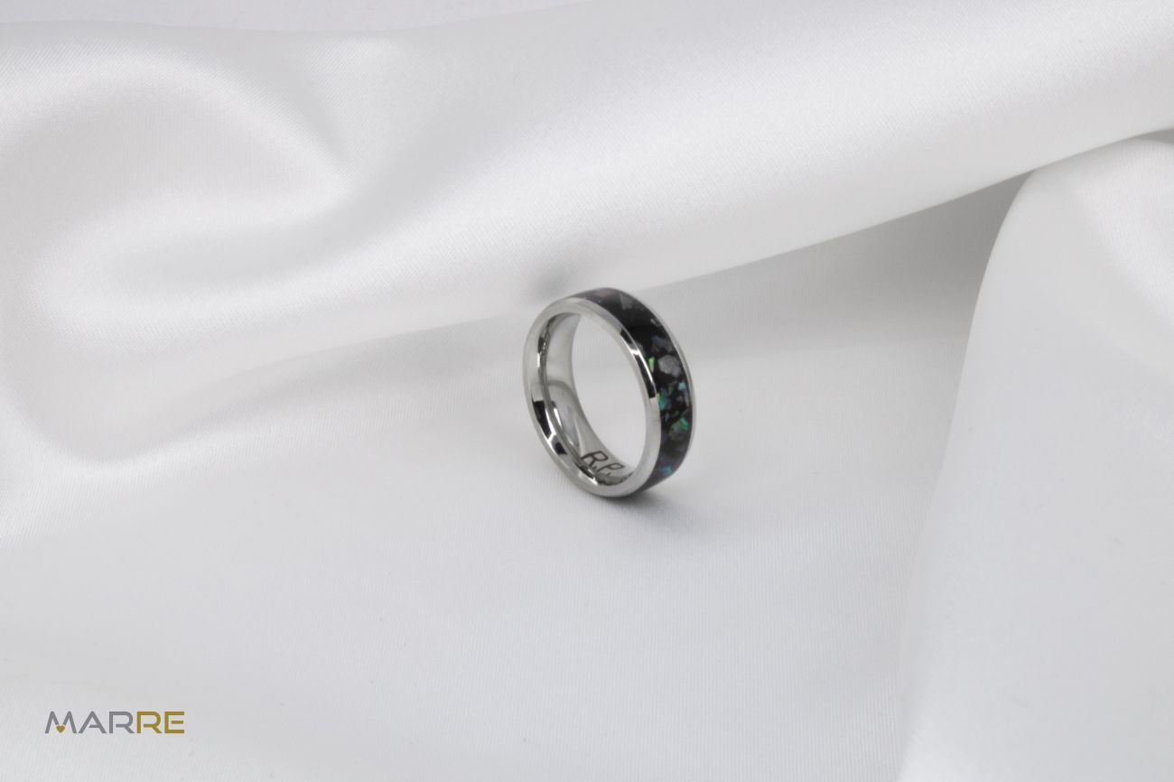 Elegantní ocelový prsten s vykládaným středem z perleti zaujme na první pohled svou jemnou hrou barev a lesku. Kombinace chladné oceli a přírodní perleti působí moderně, ale zároveň nadčasově, díky čemuž je prsten vhodný jak pro každodenní nošení, tak pro výjimečné příležitosti.