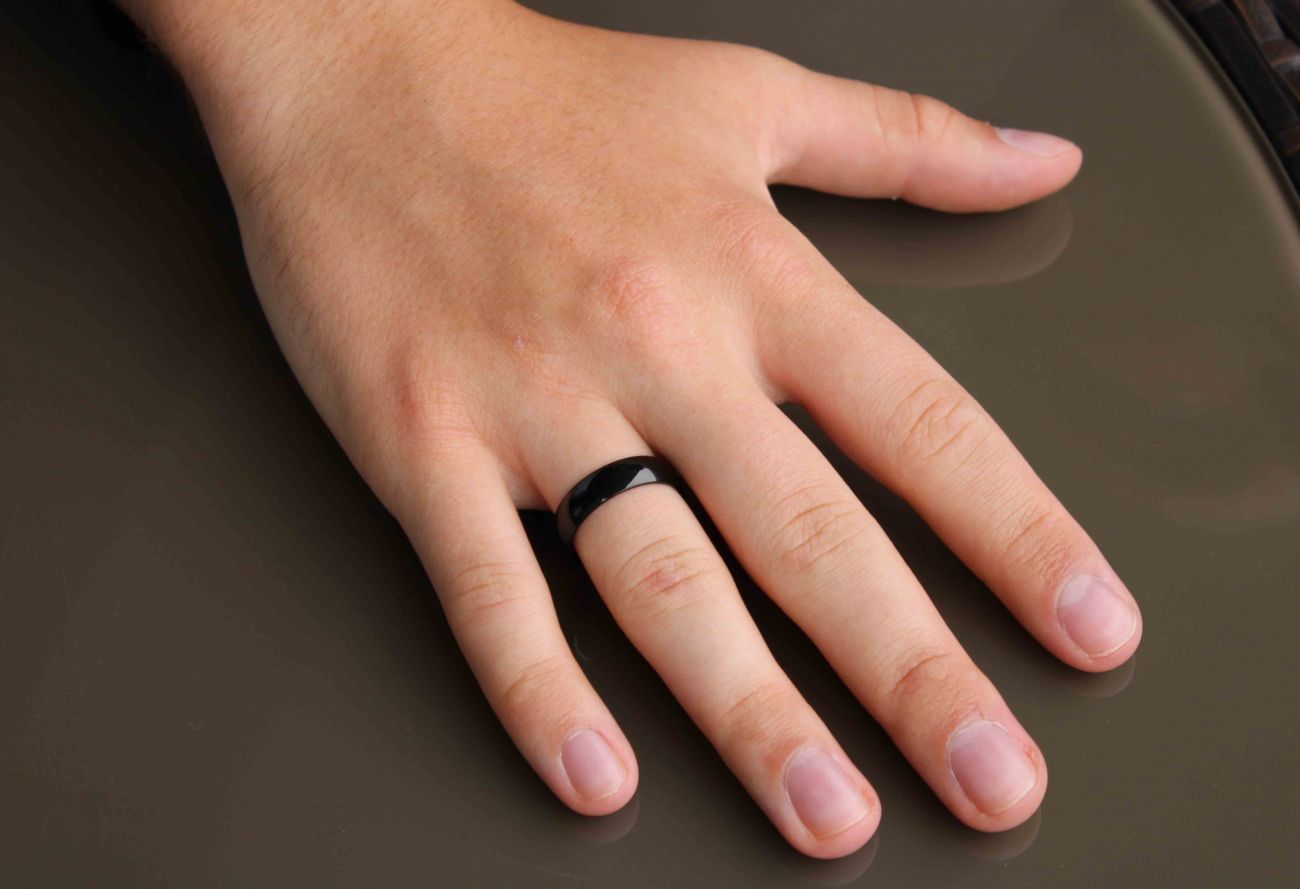 Černé ocelové snubní prsteny.