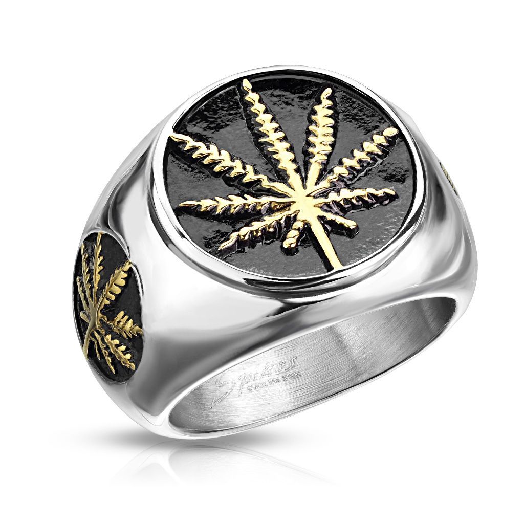 Pánský ocelový prsten lit marihuany