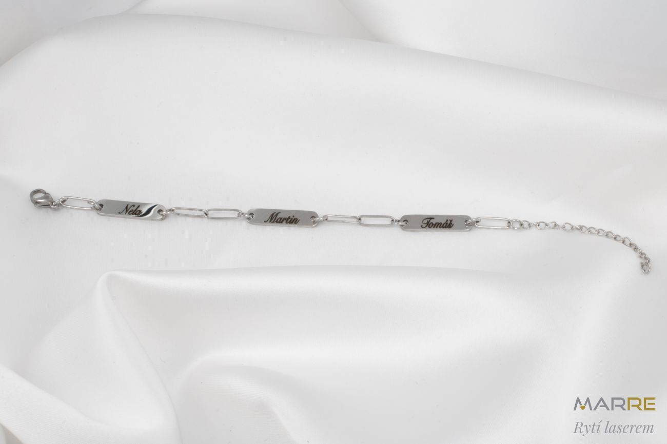 Ocelový náramek s destičkami pro gravírování