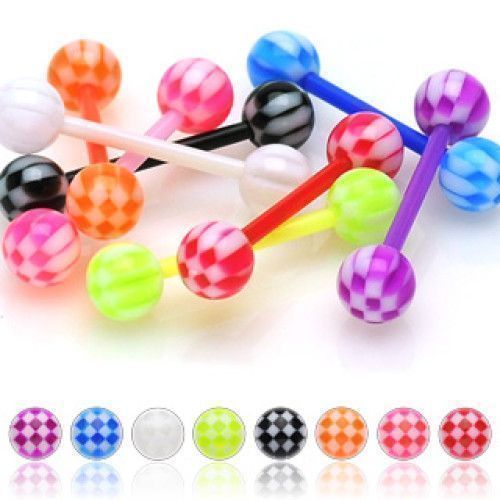 Piercing je vyroben z bioplastu. Je pružný, ohebný. Kuličky s kostičkovaným šachovnicovým vzorem vyniknou pod UV světlem.