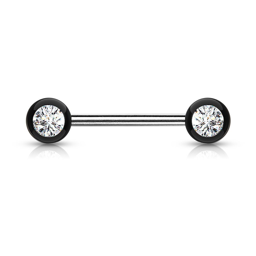 Piercing do bradavky s akrylátovými kuličkami s čirými zirkony.
