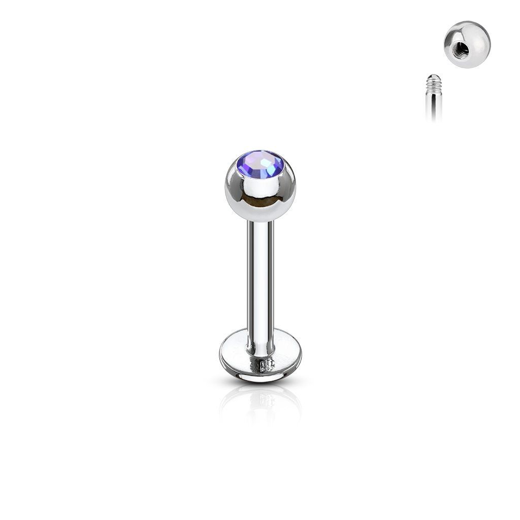 Piercing do brady - labreta (světle fialová, 3 mm, 1,2 x 10 mm)