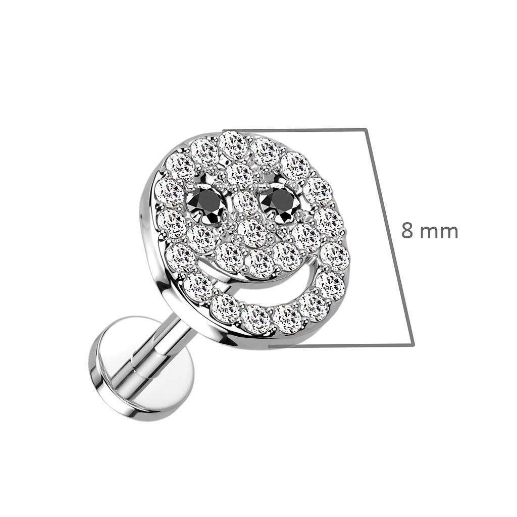 Piercing do brady s ozdobou ve tvaru smajlíka se zirkony.