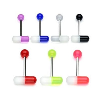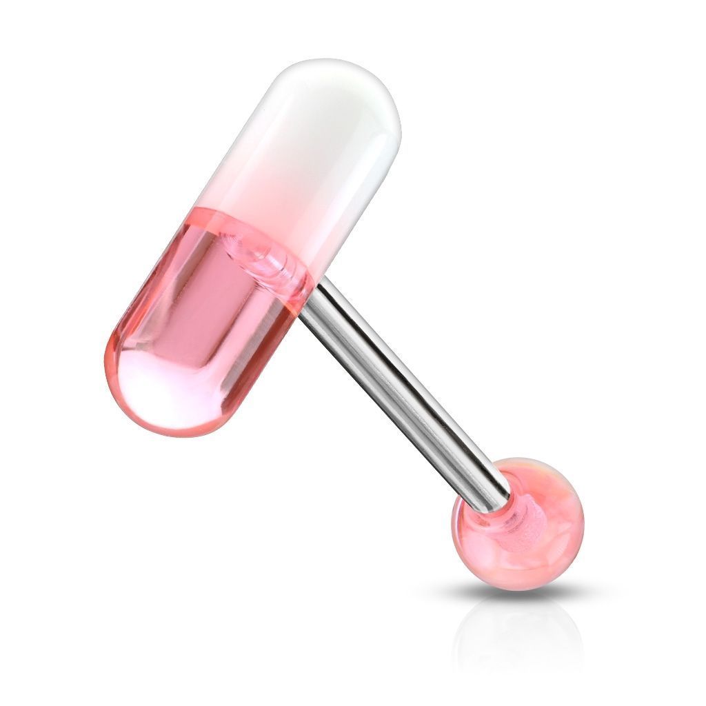 Tyčka piercingu do jazyka je vyrobena z chirurgické oceli 316L a kuliky jsou z akrylátu.