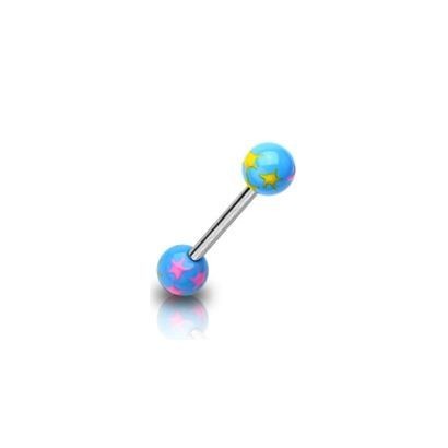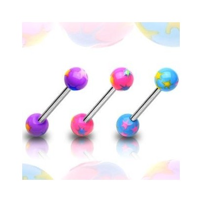 Tyčka piercingu z chirurgické oceli. Akrylátové kuličky s hvězdičkami.