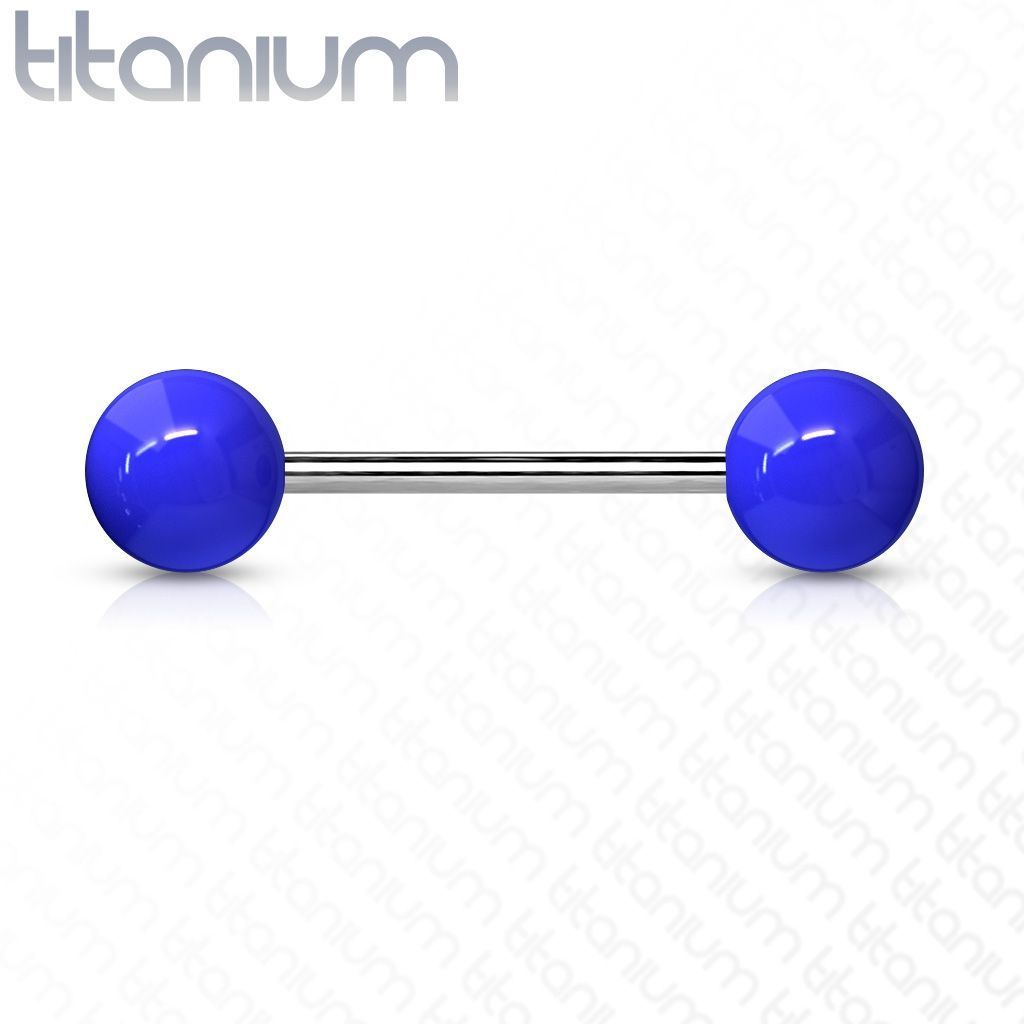 Titanový piercing do jazyka s akrylátovými kuličkami.