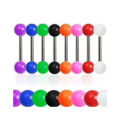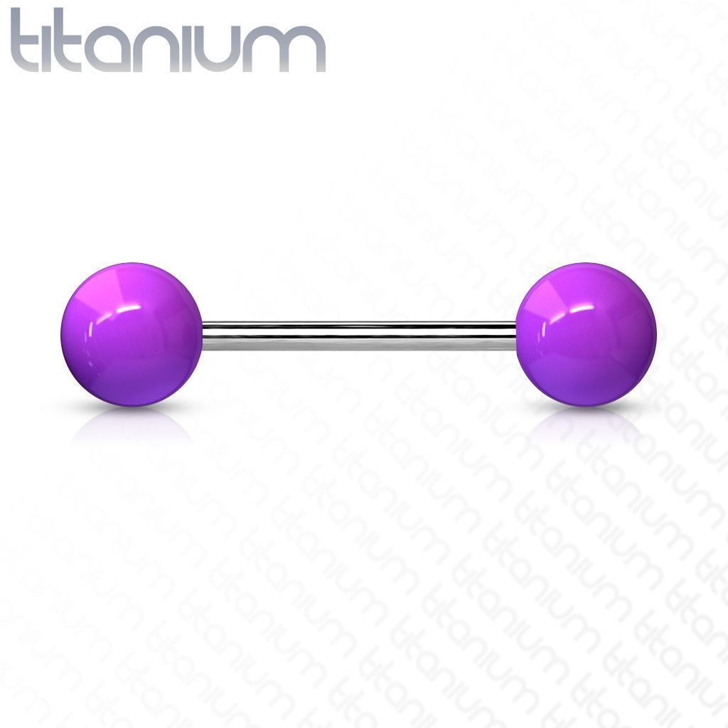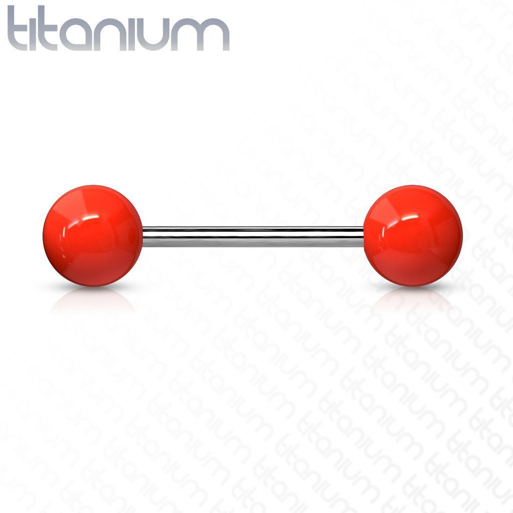 Titanový piercing do jazyka s akrylátovými kuličkami.