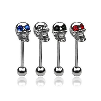 Piercing je ozdoben na jedné straně lebkou, která má oči osazené zirkony.